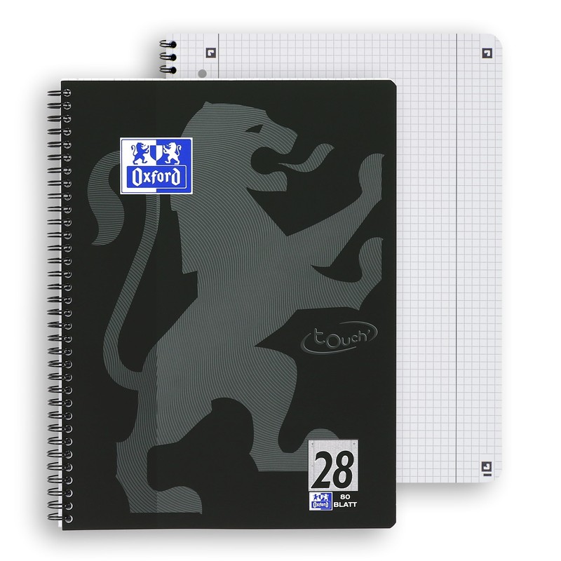 Oxford Touch College Notepad A4 Squared with Double Margin 80 Sheets Black