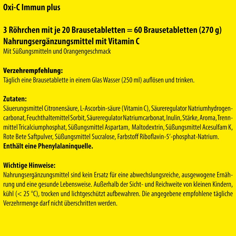 By the way, did you know that about 30% of Germans consume less vitamin C with food than recommended by nutritional scientific societies. This is even more true if there are not enough fresh fruit and vegetables available. Oxi-C Immune plus close this supply gap!