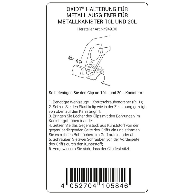 | Size: | Halter für 10 / 20 Liter Kanister |