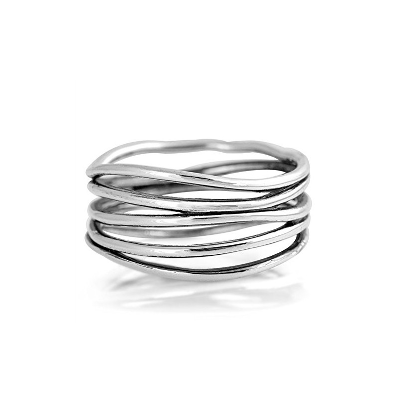 Oxidized Stacked Bar Knot Wide Wedding Ring New 925 Sterling Silver Open Band Size 12