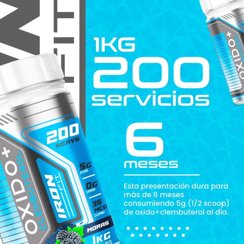 Óxido Nítrico + Clembu 1kg Pre Entreno Iron Fit 200 Servs Moras