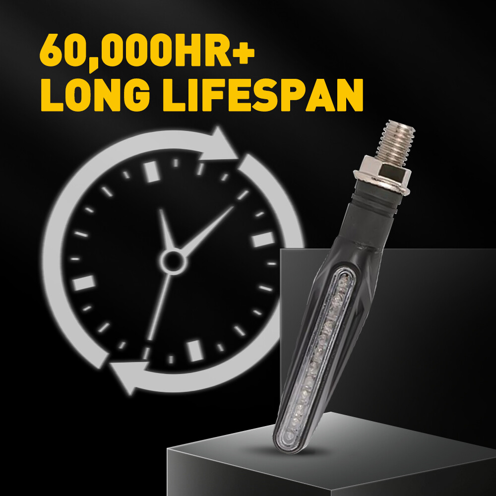 - Waterproof & Durable - The front led turn signals made of smoked PC lens, anti-scratch and waterproof, protect led chips from water or dirt damage without weakening light, prolong the life service time. Metal bracket processed with black anodized finish, anti-oxidation, anti-corrosion.