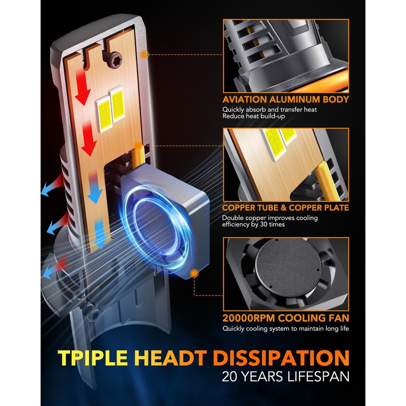 - 【20 YEARS LIFESPAN, STABLE LIGHT OUTPUT】A long lifespan requires an efficient cooling system. OXILAM 9004 lights are equipped with a premium aviation-grade aluminum body, a high-quality thermostatic copper plate, and a powerful 20,000 RPM super-speed cooling fan. This efficient cooling system quickly dissipates heat, ensuring stable operation for an impressive 60,000-hour lifespan.