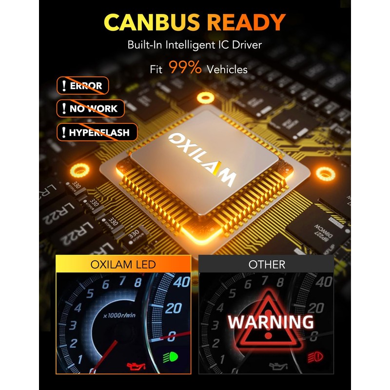 - Perfect Beam Pattern – The OXILAM 9012 bulb features an ultra-thin 0.03-inch chip spacing, mimicking the halogen filament position for a 360° uniform beam with no dark spots. The focused beam minimizes glare, ensuring a safer drive