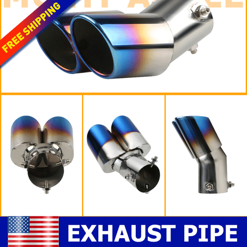 - Made of high quality stainless steel, exquisite workmanship, no fading, no rust; High temperature bluing, three-color natural gradient, not rigid, dynamic; beautiful and durable; Protect the original car exhaust pipe.