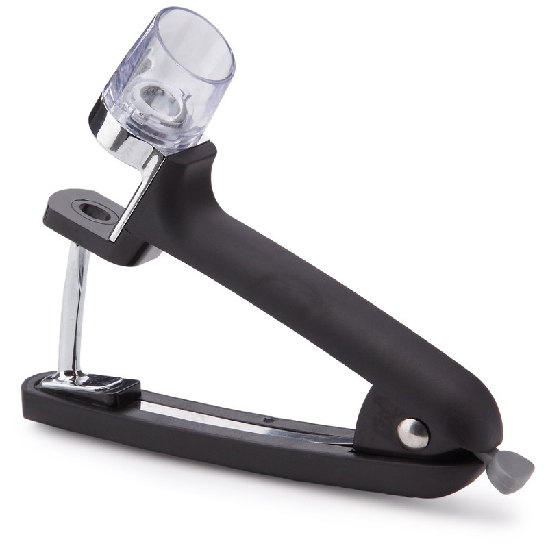 Clean and simple, just sit the cherry or olive in the front chamber, and with a quick squeeze of the soft grip handles, the stone will drop straight out. OXO have given it a generously sized chamber, meaning it takes even the largest varieties of cherries and olives. With its built-in splatter shield, it is mess-free and leaves the fruit in-tact.