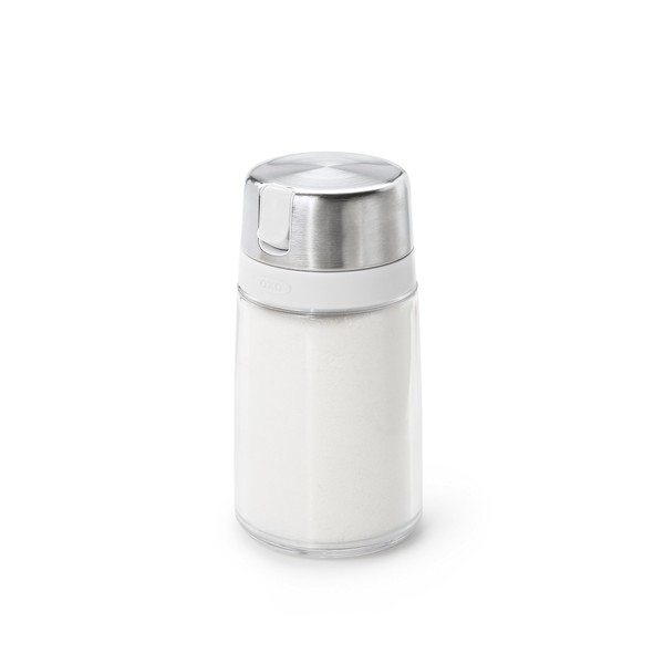 A spoonful of sugar is always close at hand with the OXO Good Grips Sugar Dispenser. The side spout allows for easy, controlled pouring, making it perfect for coffee, cereal, fruit and more. The stainless steel accents make it great for countertop or table use. The clear, BPA-free body shows just how much sugar is left and the lid twists off to reveal a generous opening for easy refilling.