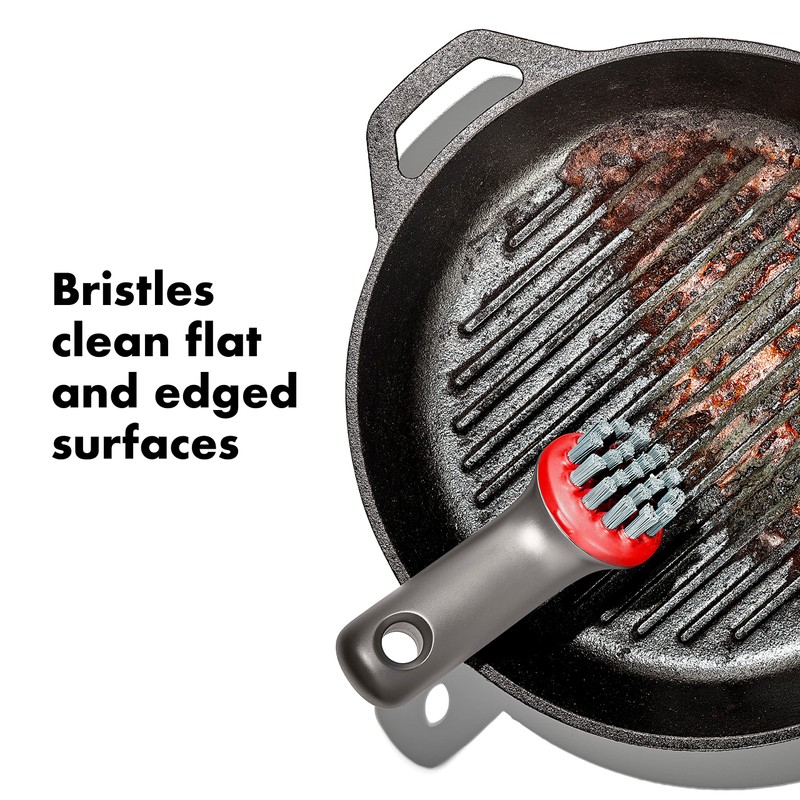 OXO Outdoor Heavy Duty Cast Iron Brush with Cover,Red/Grey