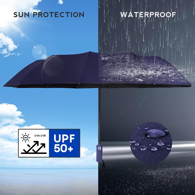 OXTXO Folding Travel Umbrella - Windproof, Auto Open/Close, 24 Reinforced Fiberglass Ribs, UV Resistant, Lightweight & Portable, for Rain or Shine (navy blue)