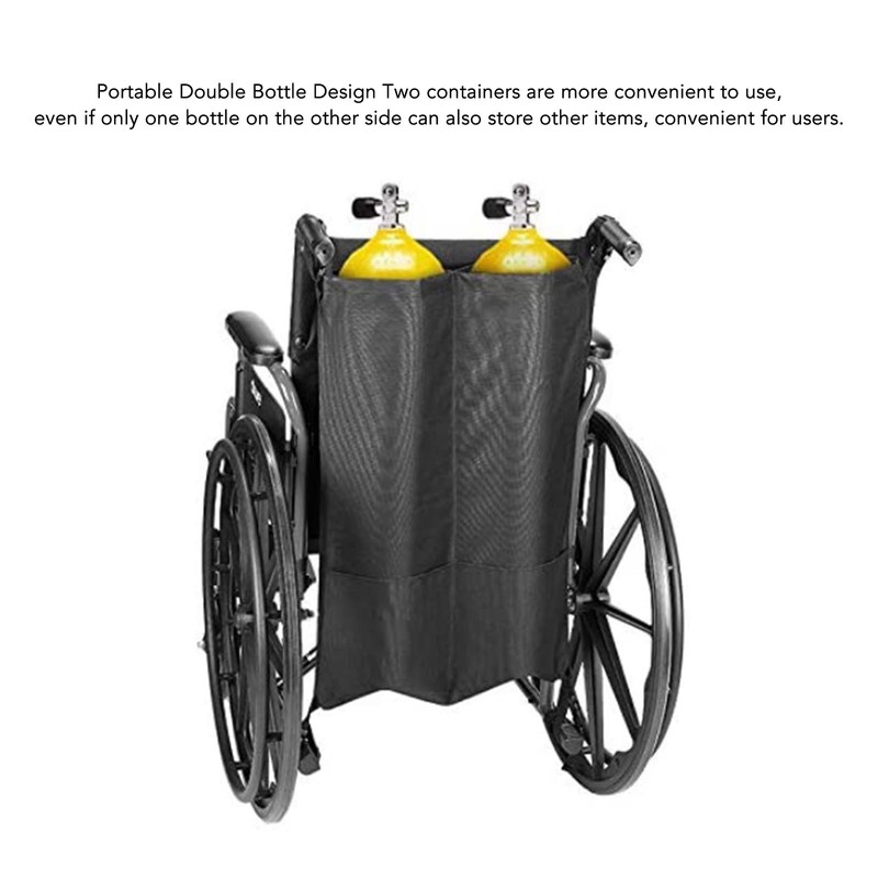 1、Wide Applicability: This oxygen bottle bag is suitable for a variety of equipment, such as wheelchairs, walking machines, etc., can easily carry oxygen bottles. 2、Mesh Storage Bag: In addition to the basic bottle storage, this oxygen tank bag also comes with a mesh storage bag for easy carrying some small items. 3、Strong and Durable: The oxygen cylinder bag is made of high grade materials, which can withstand the weight of the oxygen cylinder and is durable. 4、Portable Double Bottle Design: Two containers are more convenient to use, even if only one bottle on the other side can also store other items, convenient for users. 5、Easy Installation: The oxygen bottle bag has a simple hook design for easy installation on the device and can be quickly removed.