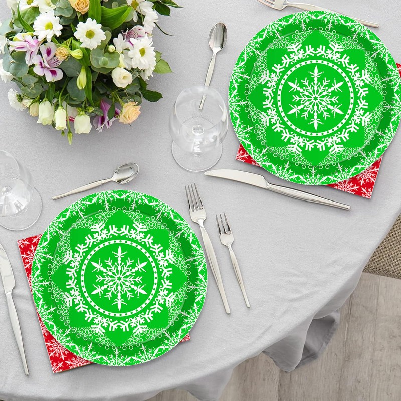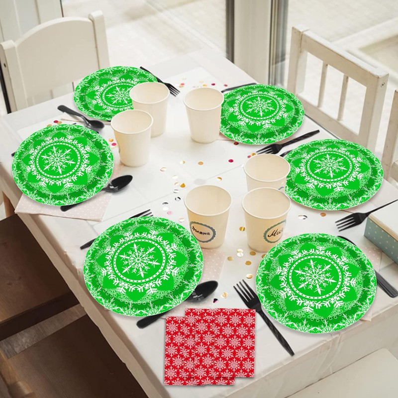 - 【Includes 24 Paper Plates】These Green Snowflake plates set includes 7 inches by 7 inches, each order brings 24 paper plates.