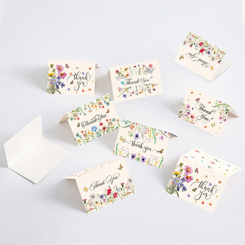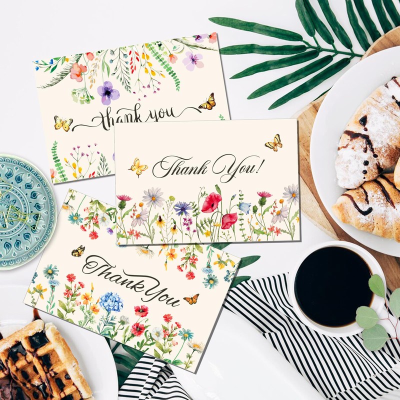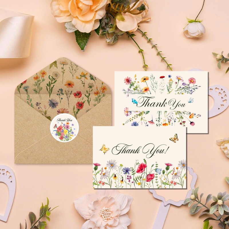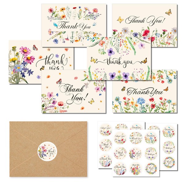 OXYLIPO Floral Thank You Cards with Envelopes, Set of 24, 4x6 inches, Wildflower Design, Stickers Included