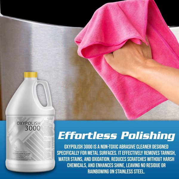 OxyPolish 3000 - Metal Stain and Oxidation Remover, for Stainless Steel, Aluminum, Chrome, Removes Water Stains, Oxidation, Corrosion with Minimal Effort, Heavy-Duty Cleaner and Restorer - 1 Gallon