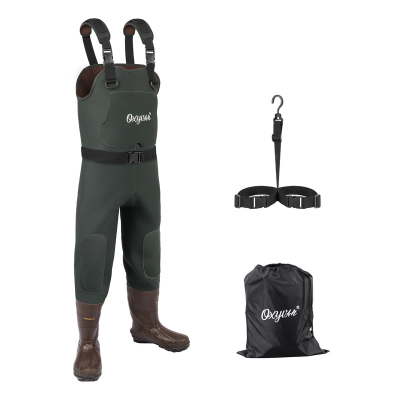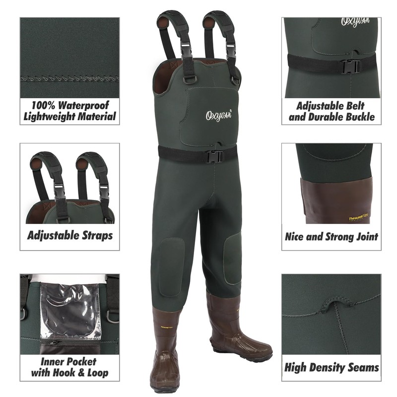 - Durable & Sturdy – OXYVAN Fishing Waders with boots are made of 100% waterproof 4.5 mm neoprene material and also has excellent insulation properties. With great material, stretch liner and triple-finished seams that are stitched, glued and taped.