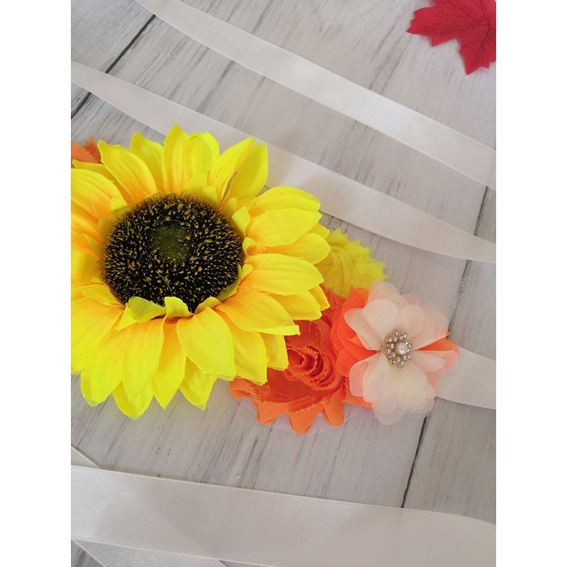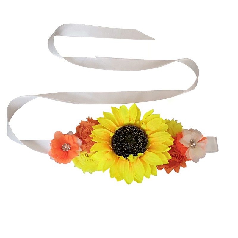 Oyabridal Sunflower Women's Floral Sash Belt,Bridal/Bridesmaid Wedding Dress Sunflower Satin Ribbon Sashes (Orange)