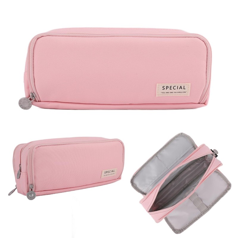 Oyachic 3 Compartment Pencil Case Large Capacity Pen Pouch Oxford Storage Bag Cosmetic Makeup Case for Men Women Adults Travel Business Office (Pink)