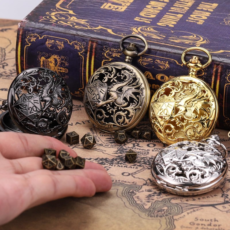 • Ideal Dice Case - All D&D dices are put in a hollow Dragon & Phoenix pocket watch case, which can be worn with a necklace or pocket watch chain as you wish, stylish and portable.