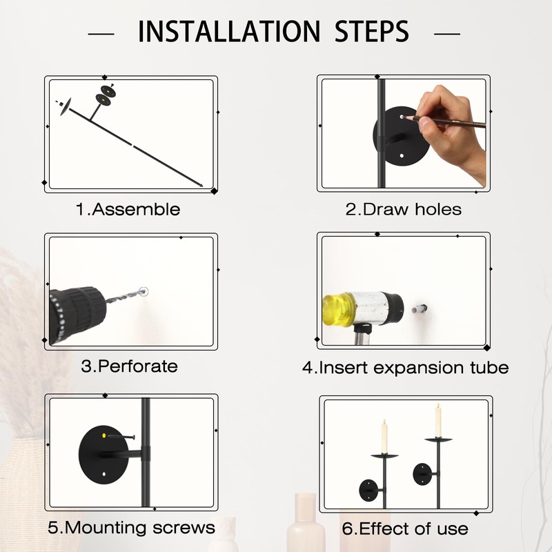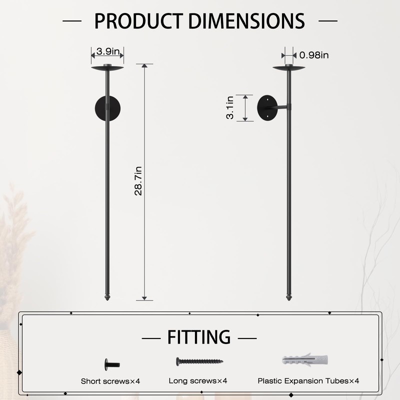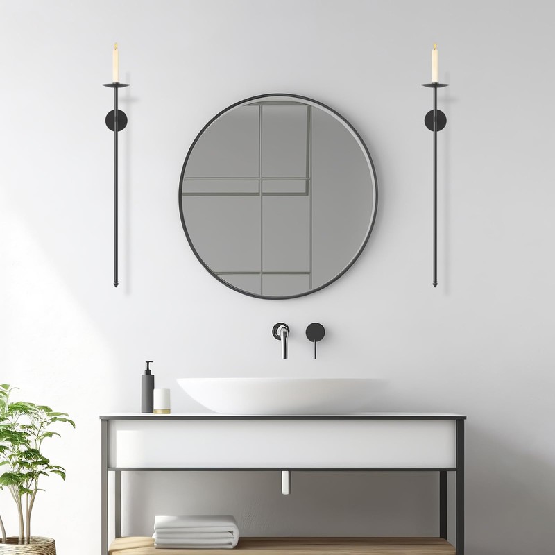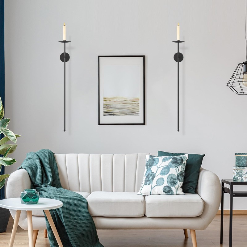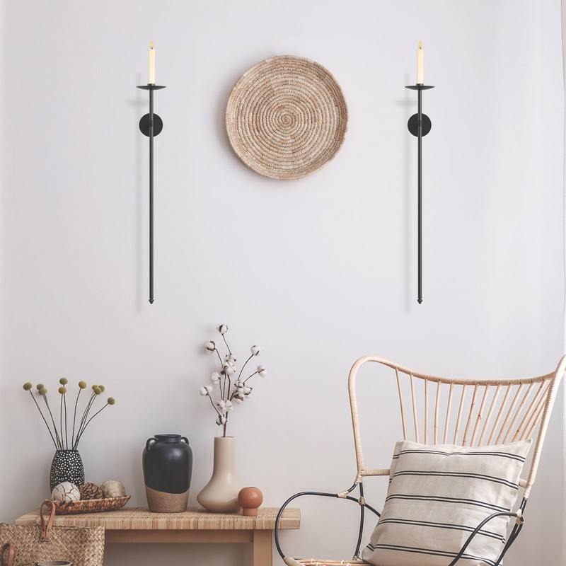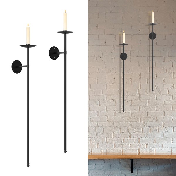 OYEFLY 2 Pcs Large Wall Candle Holder,Wall Mount Metal Candle Holders Decor (Black)