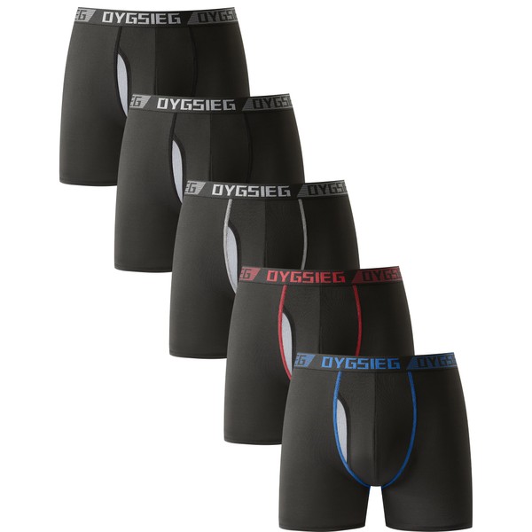 OYGSieg Men's Boxer Briefs,Fly with Built-in Total Support Pouch Moisture-Wicking Odor Control Cool Underwear for Men 5-Pack A XL