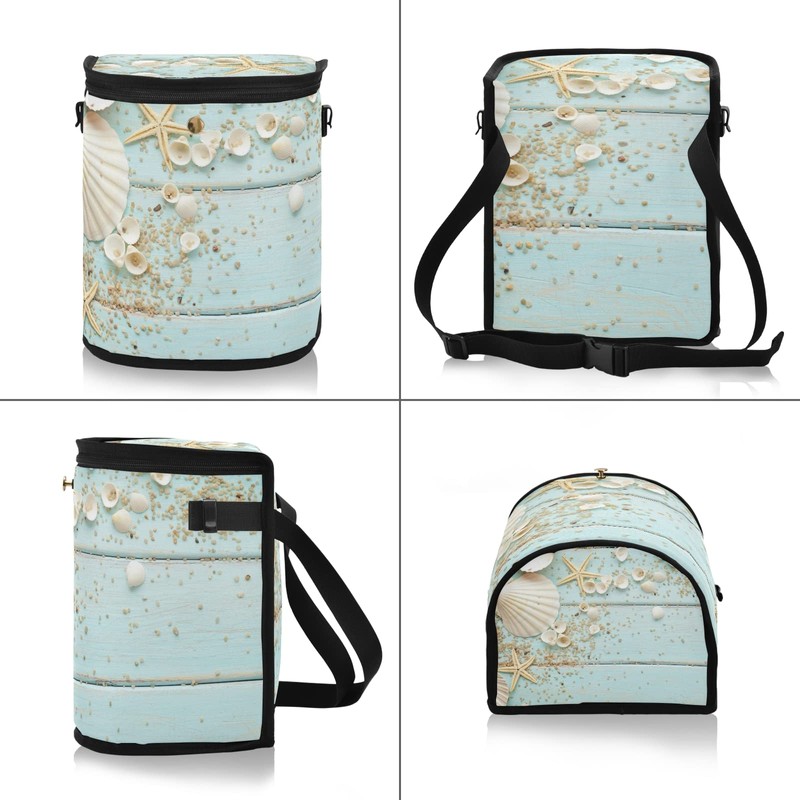 Oyihfvs Starfishes Seashells On Wood Spill-Proof Car Trash Can Organizer Hanging Large Auto Garbage Storage Bag Bin with Big Opening Lid Leakproof Waste Basket