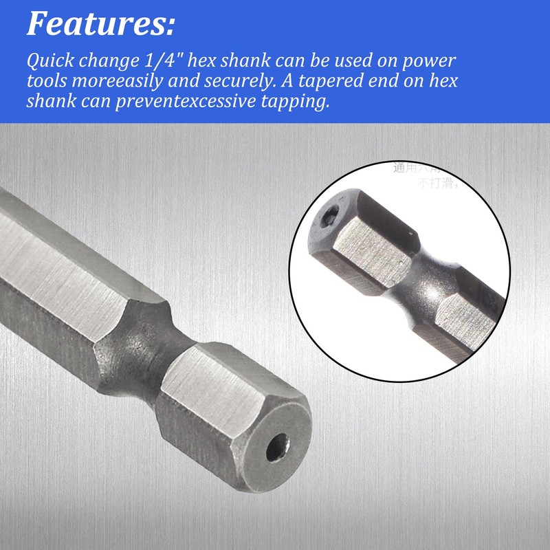 • Secure hex bit shape: the hexagonal bit design allows for secure attachment in drill chucks or screwdrivers. This ensures precise handling and minimises the risk of slipping or damage when threading.