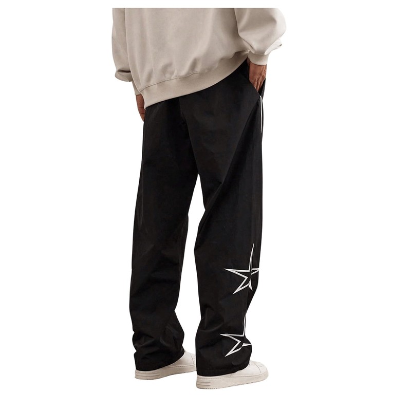 - Design: Star print, letter patched, drawstring waist, elastic waist, straight leg, loose fit, pocket