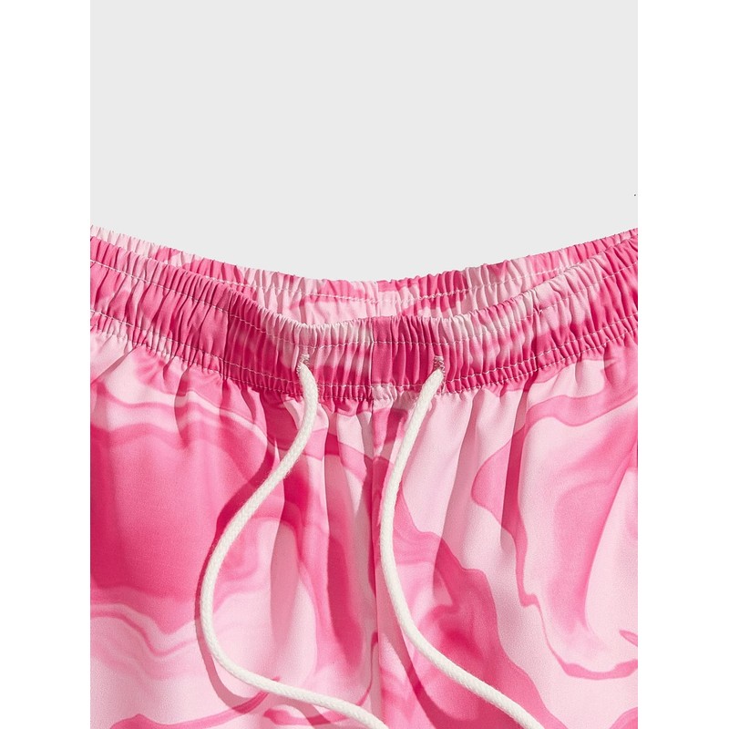 OYOANGLE Men's Graphic Print Drawstring Elastic Waist Shorts Casual Tie Dye Running Athletic Sport Shorts Pink Multi Medium