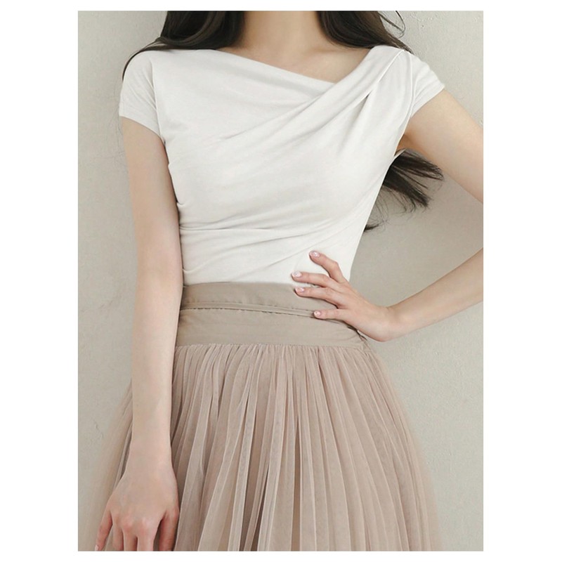 OYOANGLE Women's Asymmetrical Neck Short Sleeve T-Shirts Ruched Tight Shirts White Medium