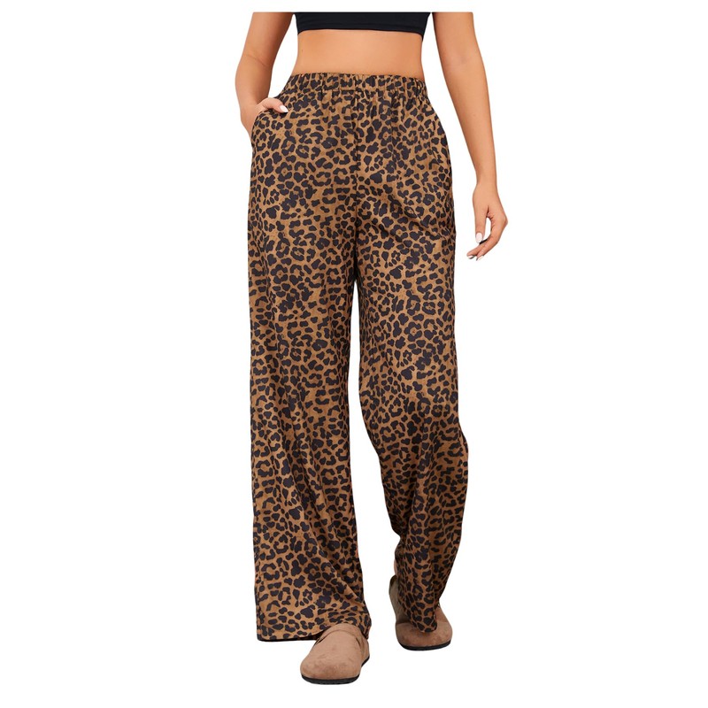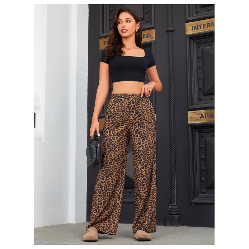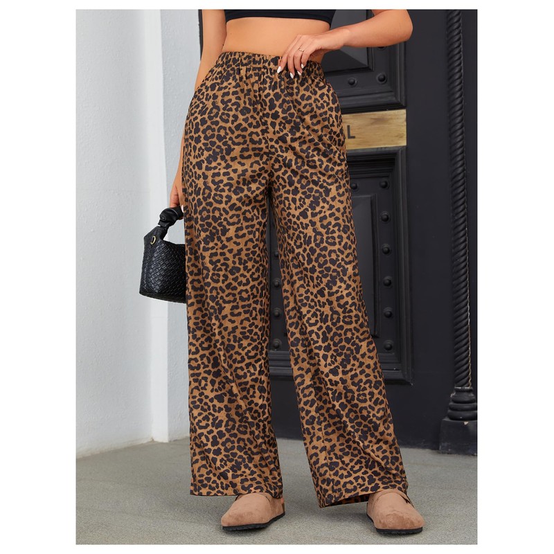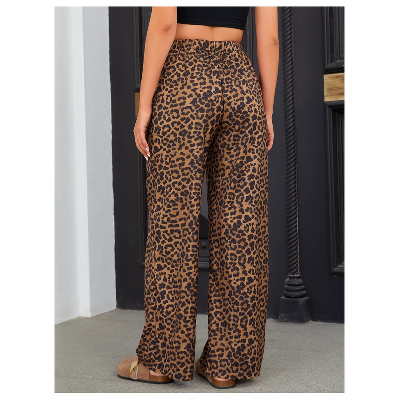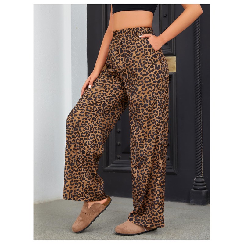 - Feature: Leopard print, elastic high waist, wide leg, slant pockets, loose, casual style, long pants for women