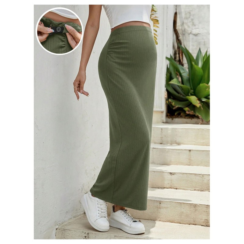 - Design: High waist, adjustable waist, solid color, maxi length, casual maternity skirt
