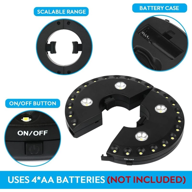 - 2.Convenient-- No need for extra tools,easy to clamp to your umbrella with the built-in auto adjustable strong clamp,also can be hung anywhere using the two hooks,pole mounted,fit poles with a diameter of approximately 0.86'' to 1.81''.