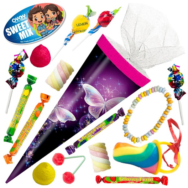 OYOY 22 cm School Cone Filled with Candy Mix I School Cone Butterflies I School Gift I School Cone Ready Filled I School Cone Small