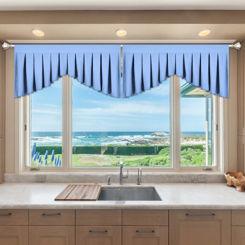 OYRING Light Sky Blue Valances for Windows - Rod Pocket Curtain Valances for Kitchen or Living Room,Pack of 2 (Light Sky Blue, 39" W x 20" L)