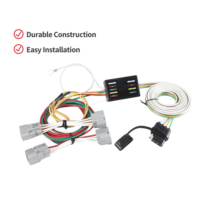 4-flat trailer light harness is compatible with a wide range of trailers, adding versatile towing options for your vehicle. 4 way output can be used to connect trailer tail lights, brake signal lights and turn signal lights.