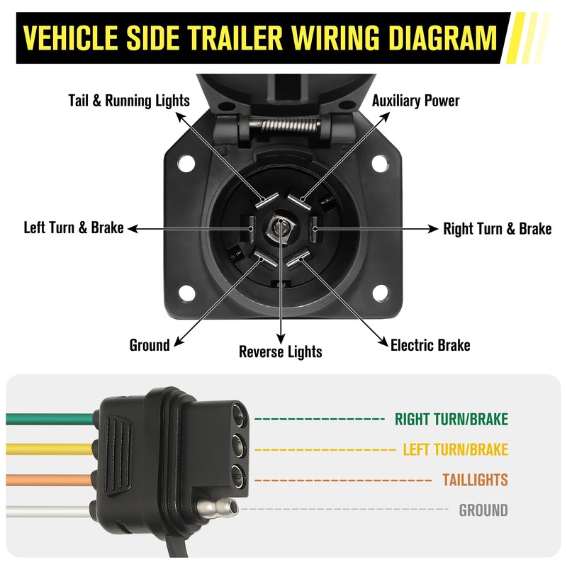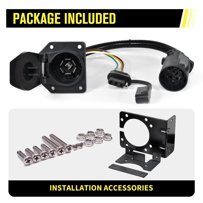 - ➤Dust Cover. Both 7 way rv connector and 4 way flat socket of this f150 trailer adapter comes with rubber dust covers, which keeps the connection points dry, and protect the plug from dusts and corrosion. We offer 1 Year Warranty for this T-Connector trailer wiring harness