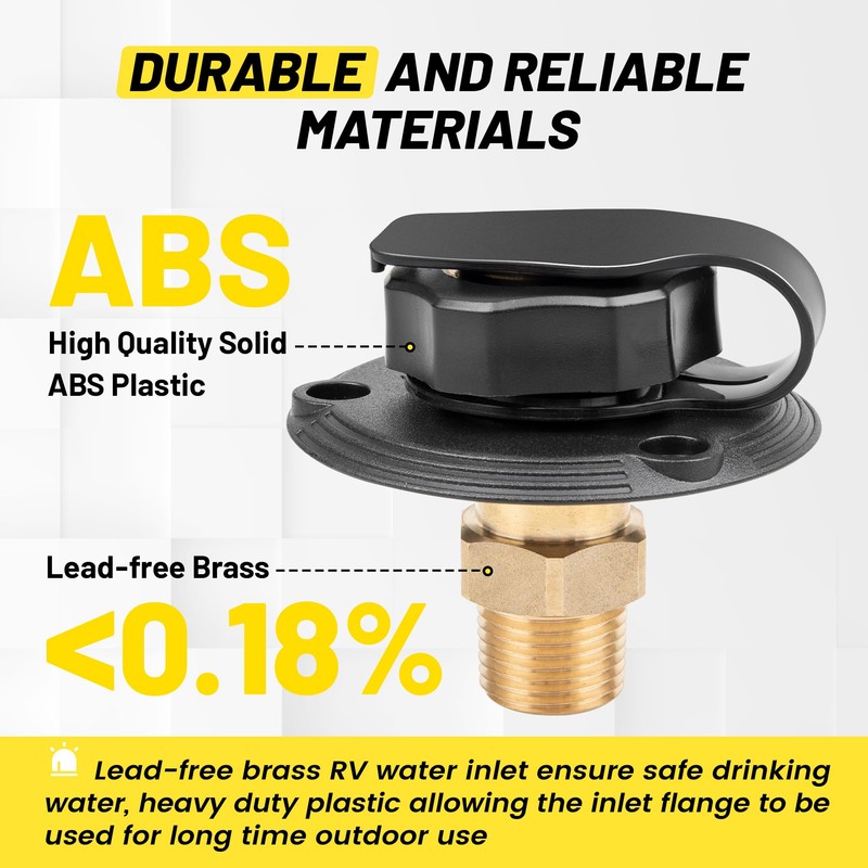 - Built-in Check Valve: Features a built-in check valve to prevent backflow, ensuring the quality and safety of your water supply; A rubber dust cap is fitted onto the RV water inlet valve to keep dust and other contaminants from entering the water supply, ensuring a clean water supply