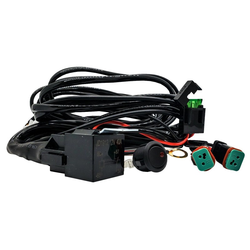 - Plug and play harness included. Switch, fuse box, relay and sealed DT connectors.