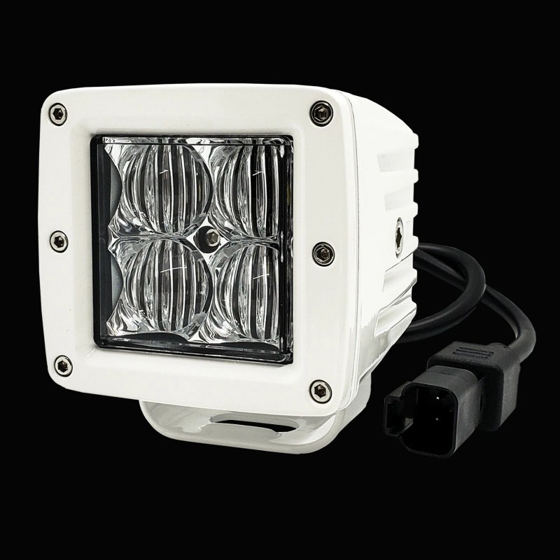 The new re-designed 4D-Series LED pod lights with a higher intensity LED chip for a brighter and longer-lasting off-road lights in the market. Utilizing a special black PC circuit board for a blacked out effect. Marine-grade white powder-coated housing. Perfect for RV, Boat deck lighting, docking lights, or off-road applications.