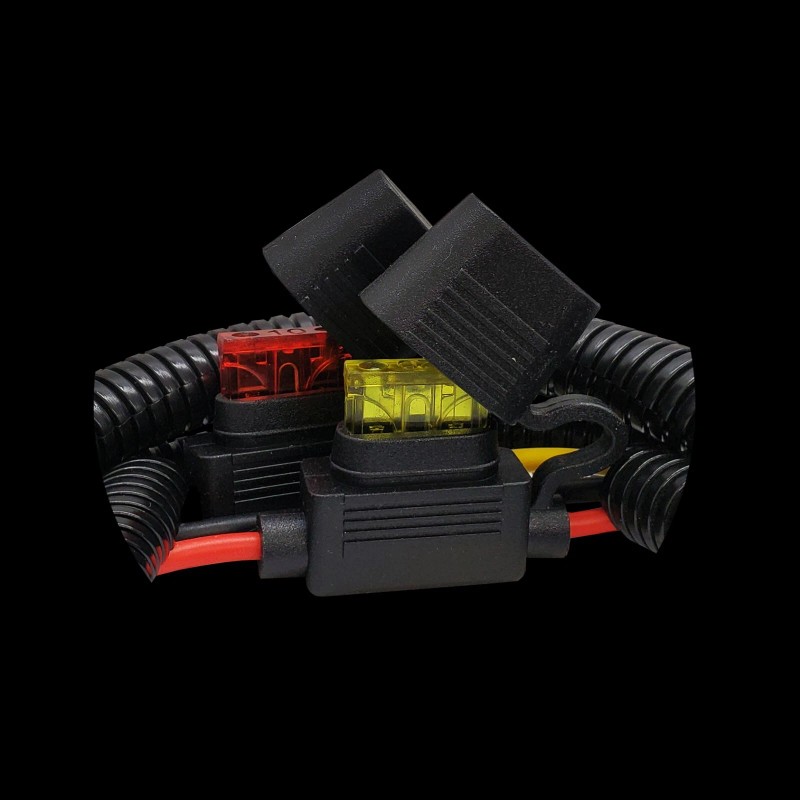- 14AWG wire with a 10A fuse for ignition(key switch) and 20A fuse for constant power.
