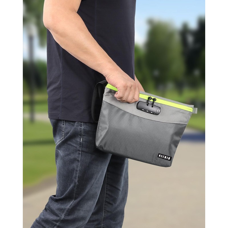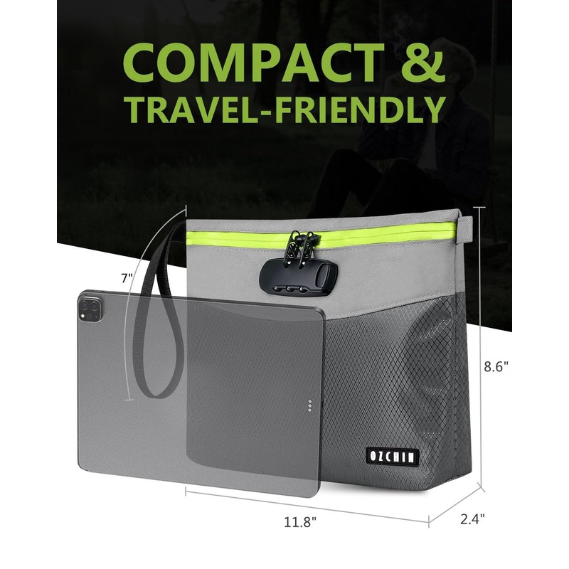 The OZCHIN Carbon Lining Bag is a premium travel organizer designed to secure and conceal sensitive items. Featuring a three-digit combination lock and double-sealed waterproof zipper, it safeguards contents against unauthorized access, moisture, and strong odors Its thick activated carbon lining absorbs and neutralizes odors, while the water‑repellent fabric coating ensures durability and easy maintenance The spacious interior with customizable dividers accommodates smoking accessories, medicines, cosmetics, and small electronics for organized, clutter-free storage Lightweight and travel-ready, this discreet, odor-proof bag fits easily in backpacks, suitcases, or drawers, delivering reliable scent control and protection anywhere