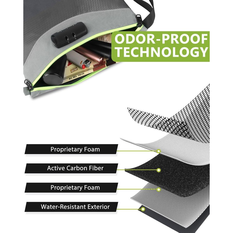 • ACTIVATED CARBON LINING FOR ODOR BLOCKING – Built with advanced activated carbon fiber lining that traps and neutralizes odors, keeping your belongings fresh, discreet, and protected during daily use, travel, or camping