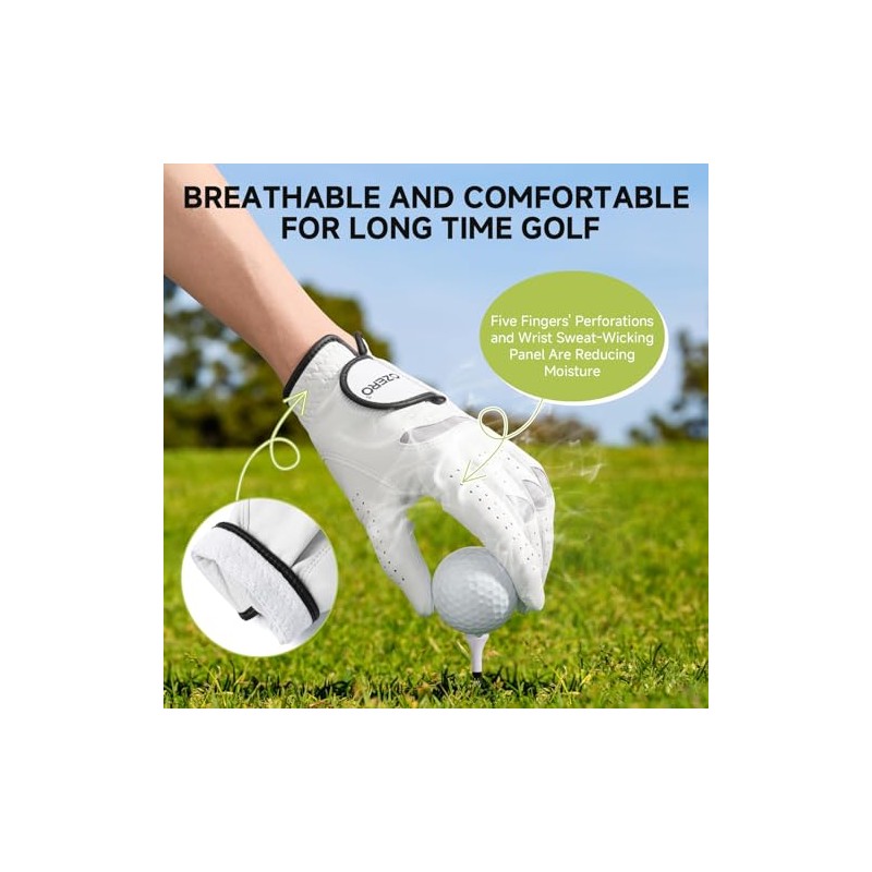 OZERO Golf Glove Left Hand: Flexible and Grip Sheepskin with Breathable Mesh for Golfer in Hot and Humid Weather Like Eagle