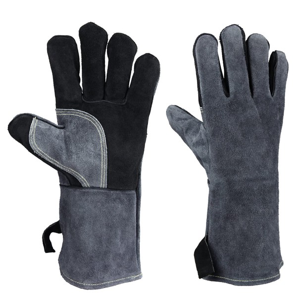 Ozero Warm-up BBQ Gloves, 500°C, Heat-Resistant Leather Grill Glove, Black-Grey