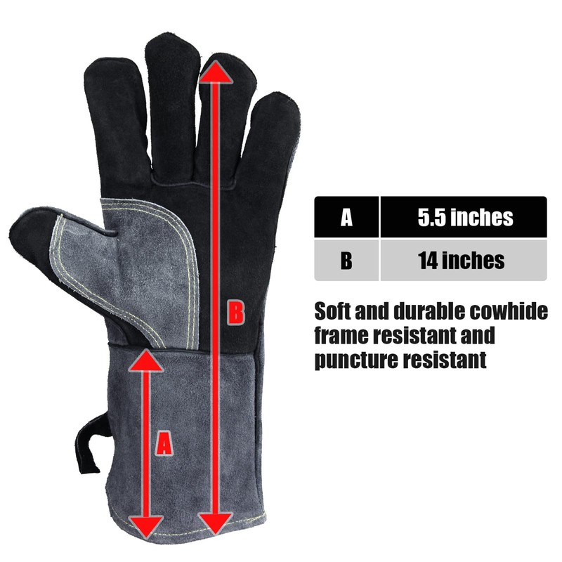 Materials: Genuine calf split leather, heat-resistant inner lining.