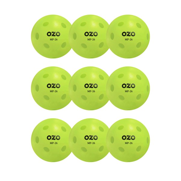 OZO Pickleball - Set of 9 Indoor Balls, 26 holes, Rotational Mould