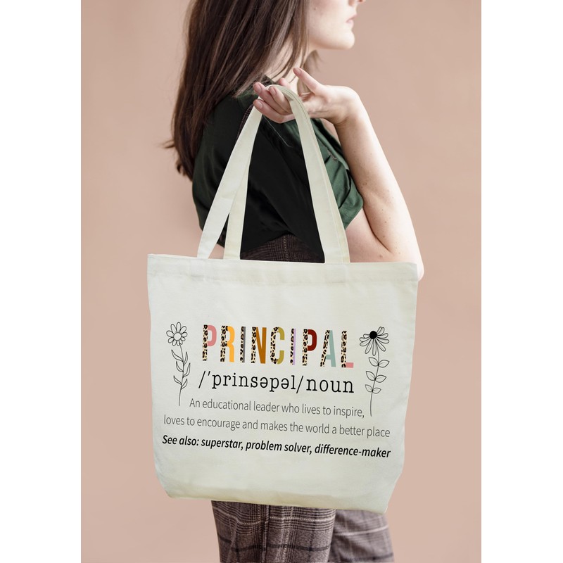 OZTEMETY Principal Gifts, Mentor Appreciation Gifts, Principal Motivational Tote Bags, Natural Canvas Tote Bags, Shoulder Bags With Floral And Eucalyptus Leaf Patterns And Leopard Prints-44