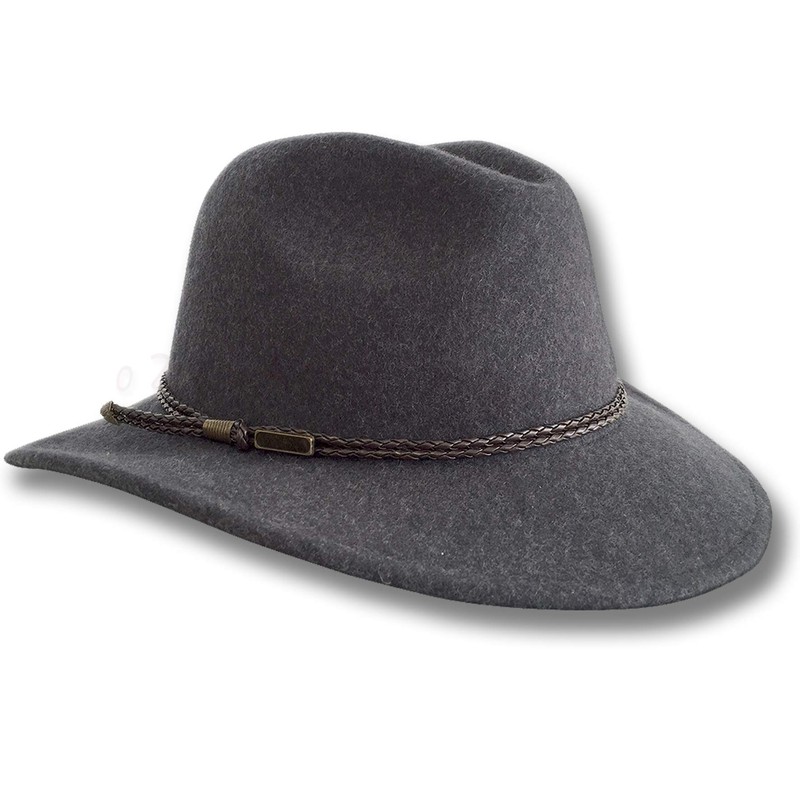 Oztrala Outback Fedora Australian Wool Felt HAT HW02 Mens Women Kids Leather Band Cowboy Western US, Grey, 7 1/4