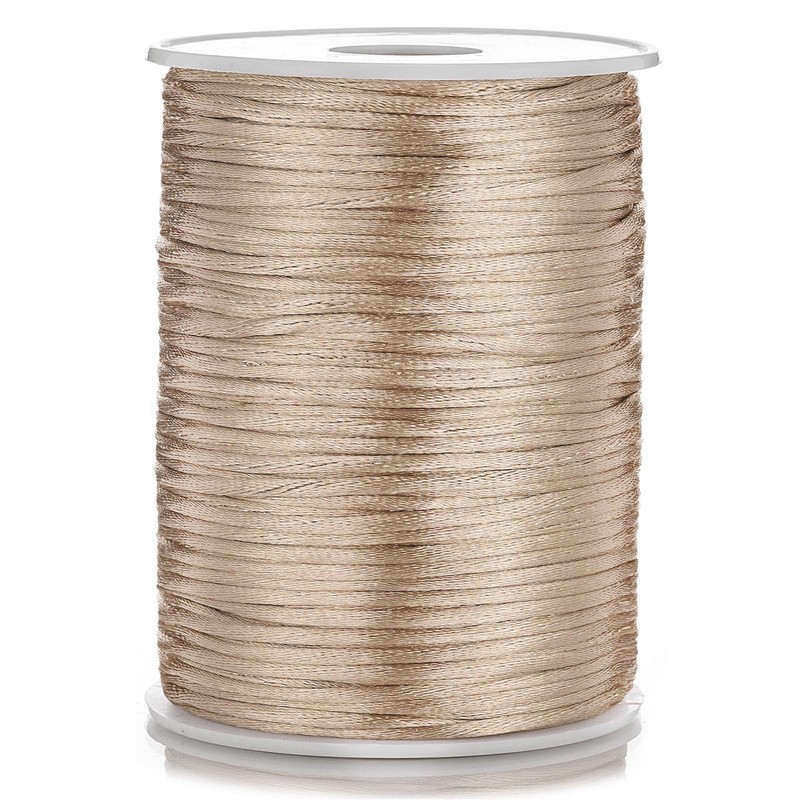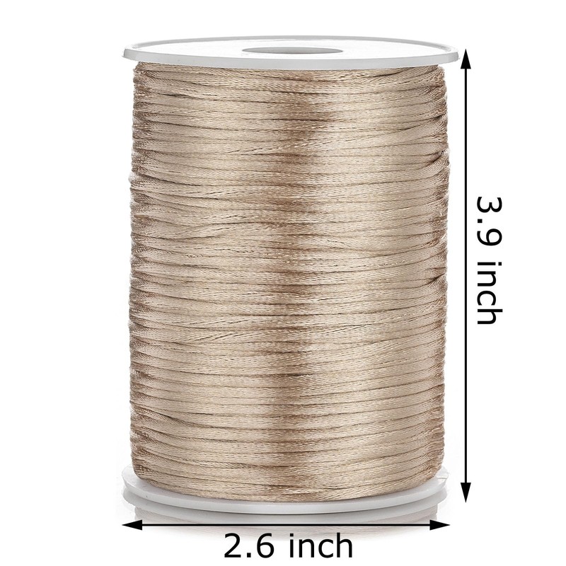 OZXCHIXU 2mm x 100 Yards Satin Nylon Trim Cord, Rattail, Chinese Knot, Kumihimo Cord (Khaki)