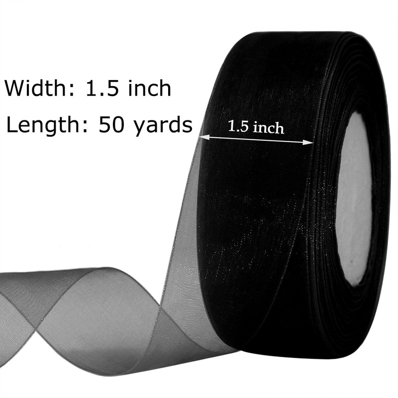 OZXCHIXU Shimmer Sheer Organza Ribbon, 1-1/2 inch x Continuous 50 Yard Black Chiffon Fabric Ribbon for Gift Wrapping, Bouquet Wrapping,Wedding Decoration,Christmas Tree, Crafts, Bows.
