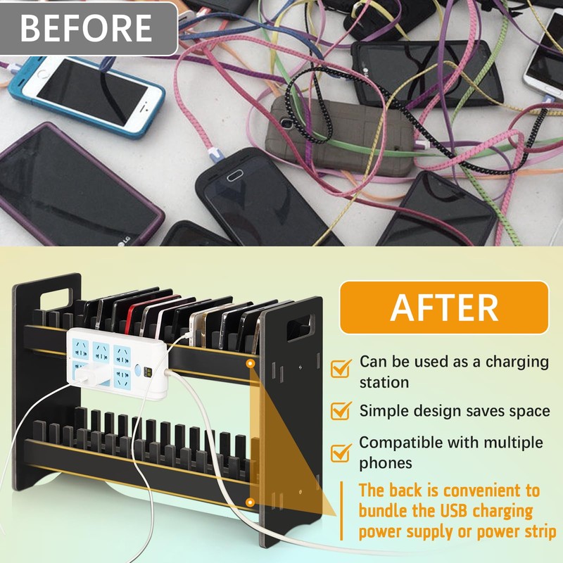 - 4. Extended Function Cell Phone Storage Stand: It can also be used as a mobile phone charging station, the back panel of this mobile phone holder can be bound to charging or power.